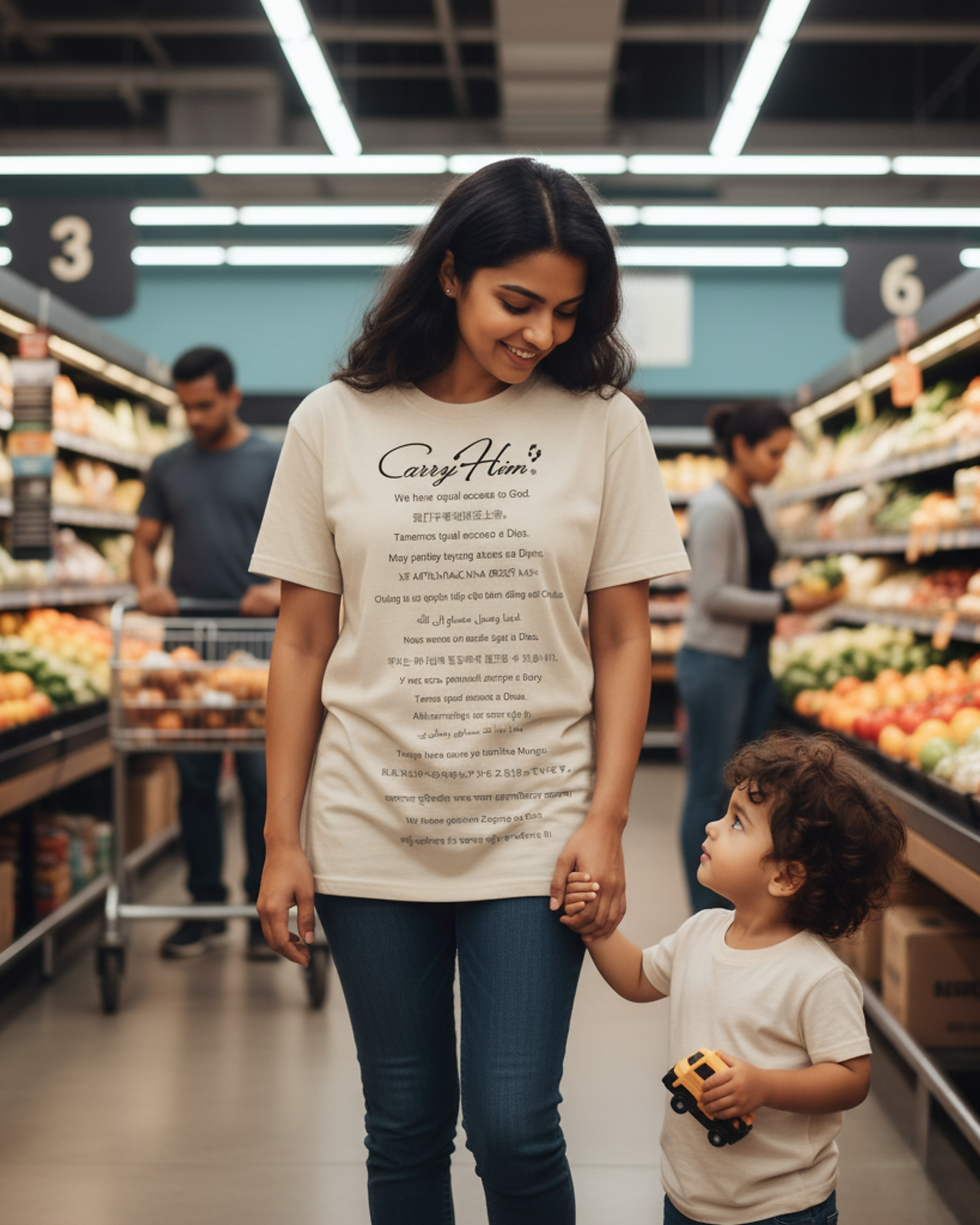 Stand out. Speak truth. Carry Him with confidence in this piece of inspirational Christian clothing designed to make a global statement of hope and unity.